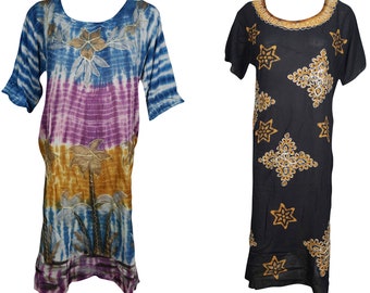 Wings To Fly Womens Caftan Dress Vibrant Shades JEWEL Print Sexy Bikini Cover Up Resort Wear Short Kaftan Dress One Size
