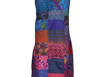 Handmade Colorful Dresses Boho Hippy Chic Sleeveless Cotton Patchwork Summer Dresses L