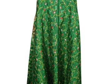 Womens Gypsy Hi Low Dress Retro Vintage 70s Recycled Sari Flowy Green Printed Strapless Maxidress M/L