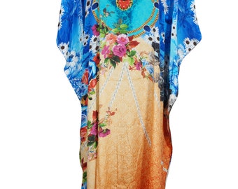 Womens Caftan Dresses, Boho Tunic, Beach Blue Jewel Digital Print Kaftan Dress, Resort Dresses One Size L-4XL