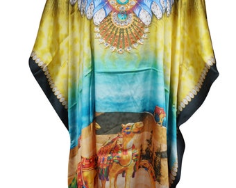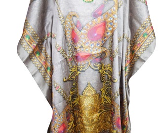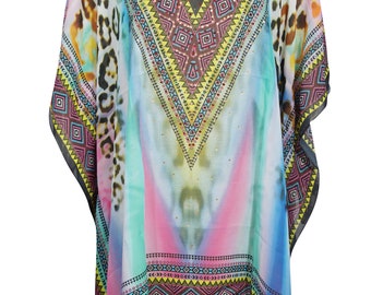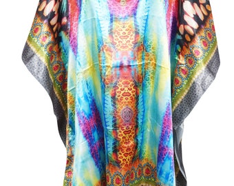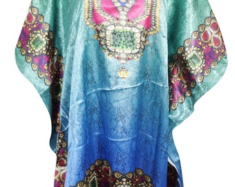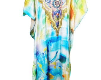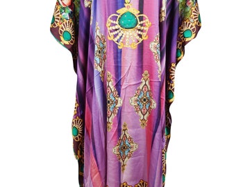 Womens Kaftan Dress, Multicolor Jewel Printed Tunic Kaftan, Boho Kimono Handmade Caftan Dresses, One Size L-4X