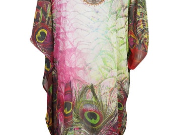 Womens Kaftan Dress, Peacock Print Pink Dresses, Loose Beach dress, Resort Wear Caftan, Georgette Kaftan Dress L-4XL One size