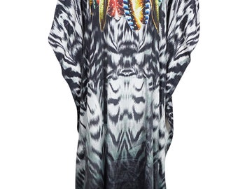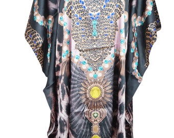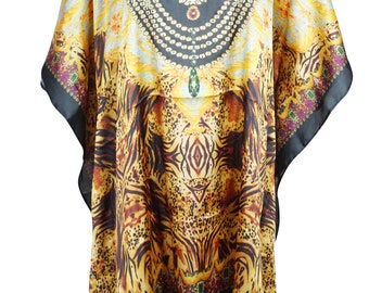 Women's Animal Print Kaftan Dress, Caftan Boho Womens Beach Cover Up Resort Yacht Party Kaftans One Size, L-3XL