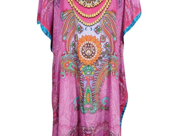 Women's Bohemian Caftan Dress PINK Kimono Resort Wear Maxi Dresses, Printed Beach Cover up Kaftan Dresses One Size, L-4XL