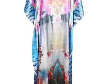 Womens Kaftan Maxi Dress, Bohemian Housedress Kaftan, Multicolor Printed Kaftan, Resort Wear, Beach Coverup, Long Caftan One Size, L-4XL