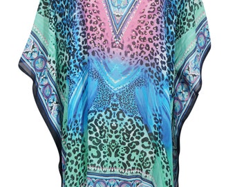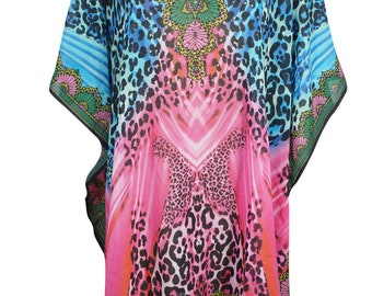 Womens Tunic Kaftan Dress, Loose Beach Tunic Blue Pink Printed Dresses, Resort Wear Caftan, Georgette Kaftan Dress L-4XL One size