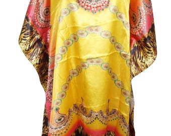 Women Tunic Kaftan Dresses, Beach Cover Up, Caftan Dress,Yellow Blue Floral Housedress Caftan Dresses L-5XL One Size