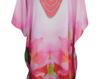 Womens Kaftan Dress, Digital Jewel Pink Floral Print Dresses, Loose Beach dress, Resort Wear Caftan, Georgette Kaftan Dress M-3XL, One size