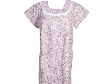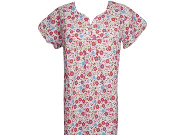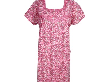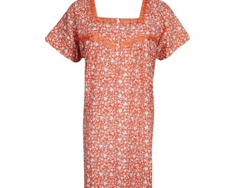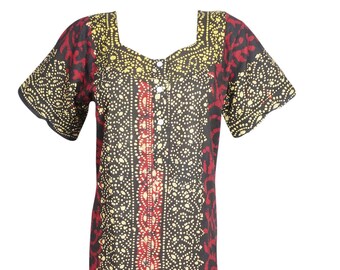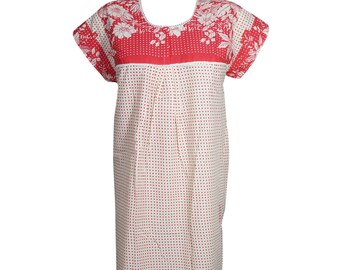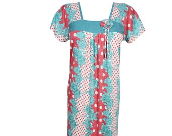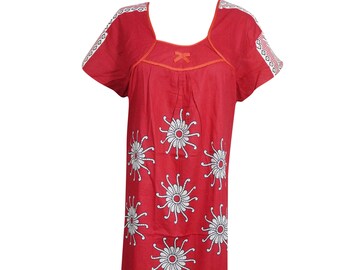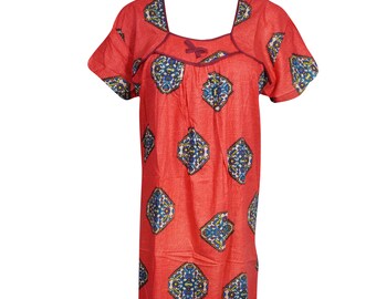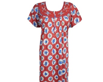 Womens Maternity Dress, Batik Red Cotton Night Gown Sleepwear Nightwear Maxi Soft Night Suit Cotton Printed Loose Nightgown Housedress M
